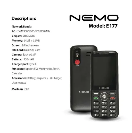 گوشی Nemo E177 با طراحی کلاسیک و بدنهی مقاوم،
